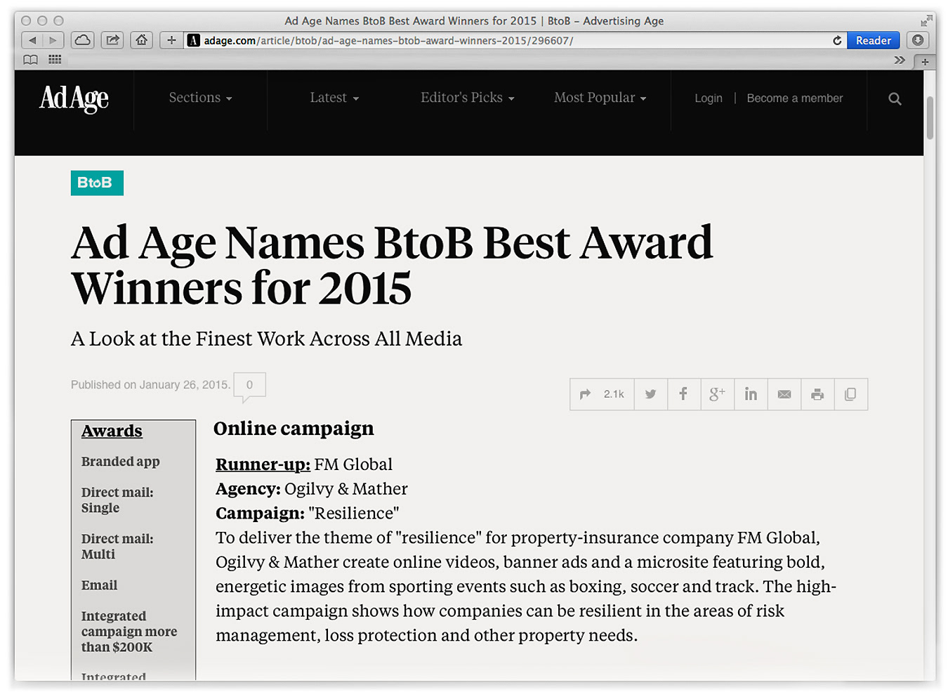 Online Campaign adage.com/b to b best2015